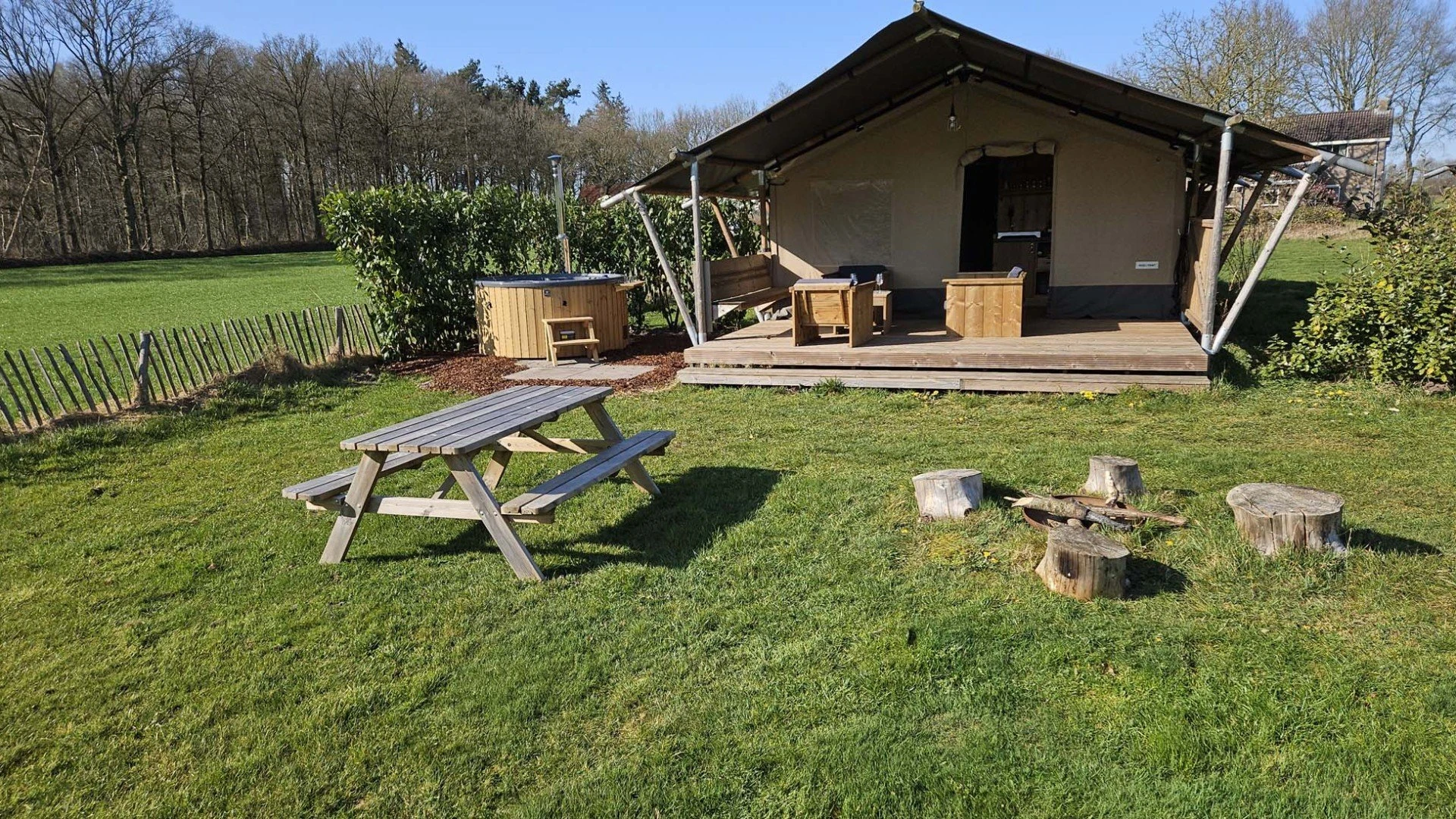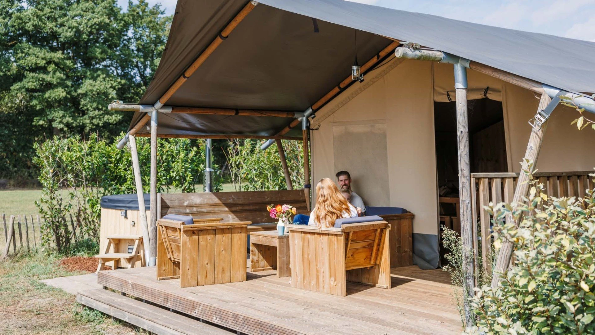 Onze luxe tenten combineren het vrije gevoel van buiten zijn met het comfort van thuis. Je slaapt op echte bedden, de accommodaties zijn voorzien van een complete keuken, een eigen badkamer en een ruime veranda. Alles is ingericht met oog voor rust, kwaliteit en natuurlijke materialen.